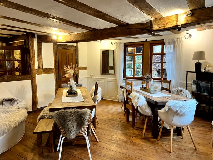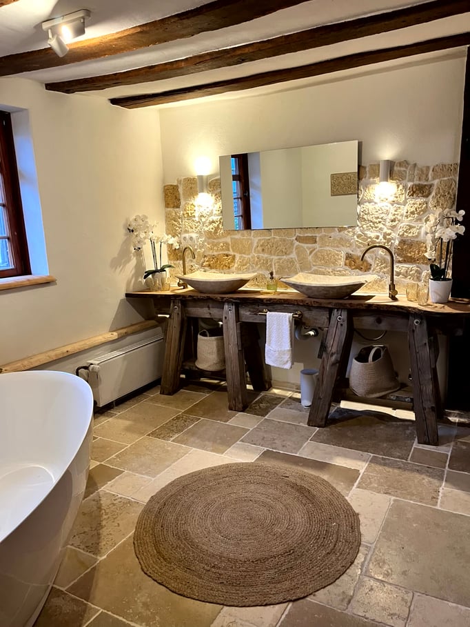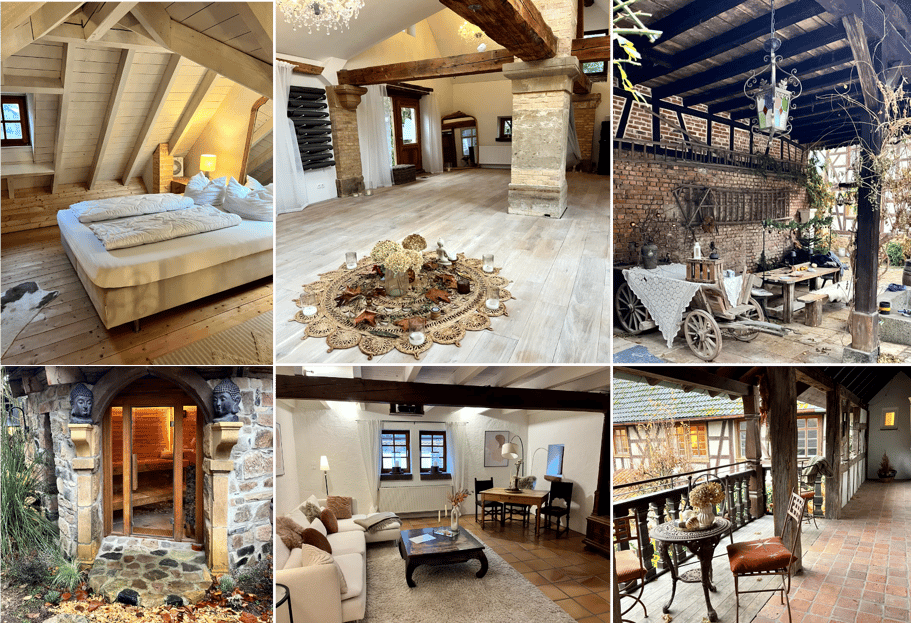 Das historische Chateau, dessen Steine und Mauern Geschichten vergangener Epochen erzählen, ist einzigartig restauriert und vereint in zauberhafter Weise urgemütlichen Charme und moderne Annehmlichkeiten. Jedes Zimmer ist individuell und mit viel Liebe zum Detail eingerichtet. Insgesamt gibt es 5 verschiedene Bereiche und alleine das Entdecken des Chateaus ist ein Erlebnis an sich. In jedem der 5 Hausbereiche gibt es jeweils ein wunderschönes, gemeinsam genutztes, Badezimmer. Neben einem gemütlichen Yogaraum mit Holzboden bietet das Chateau Sauna sowie einen Hot-Tub.